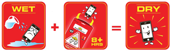 The Gadget Saver is a portable device designed to quickly and safely extract water, liquids and moisture from portable electronic devices. Simply place the device in the Gadget Saver bag (available in two sizes), reseal & leave to dry for a minimum of eight hours.